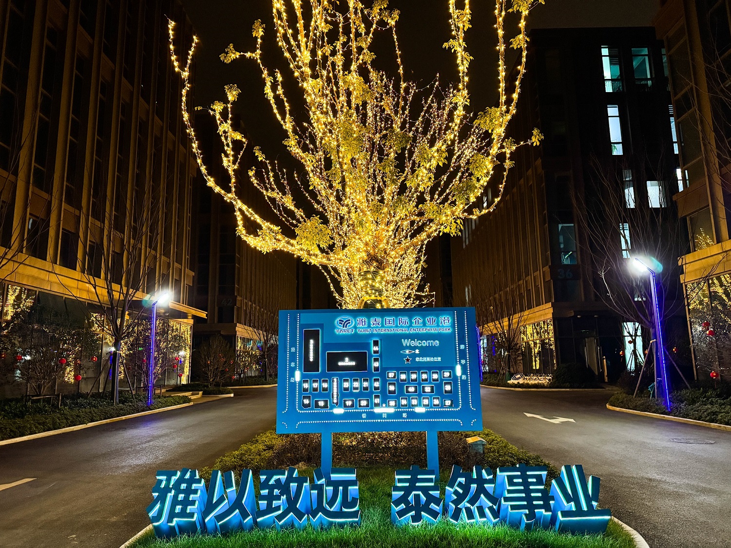 2月9日晚,集團(tuán)主要管理者、子公司主管及優(yōu)秀員工一起來到雅泰國(guó)際企業(yè)港園區(qū)進(jìn)行游園活動(dòng)。園區(qū)節(jié)日氣氛濃厚,到處張燈結(jié)彩,昭示一個(gè)吉祥幸福年的到來。樹上璀璨的燈飾流光溢彩,如繁星映月,將整個(gè)園區(qū)點(diǎn)亮;每棟樓前的大紅燈籠紅紅火火,十分喜慶,充滿了節(jié)日的歡樂。為了讓園區(qū)入駐的企業(yè)感受到這份祥和與舒適,體驗(yàn)到幸福中國(guó)年的節(jié)日氛圍,雅泰國(guó)際企業(yè)港物業(yè)公司早早進(jìn)行準(zhǔn)備與布置,讓入駐的業(yè)主與員工在園區(qū)能開開心心上班,團(tuán)團(tuán)圓圓奔向幸福年!