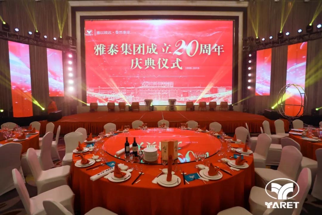 2019年12月18日17時(shí)18分,雅泰集團(tuán)二十周年慶典儀式及晚宴于江蘇省宿遷市恒力國(guó)際大酒店隆重舉行,千余人歡聚一堂,共同祝福雅泰二十歲生日快樂(lè)!