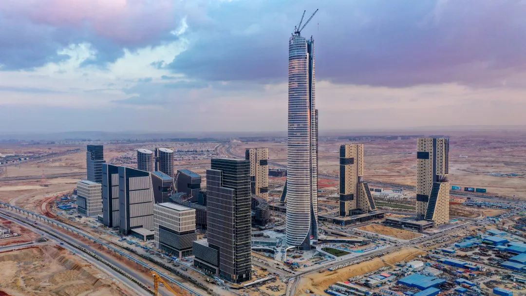 埃及標(biāo)志塔(Iconic Tower)位于開(kāi)羅以東約50公里的沙漠地帶,是埃及新行政首都的核心項(xiàng)目之一,塔高385.8米,是名副其實(shí)的“非洲第一高樓”。作為打造中埃兩國(guó)在“一帶一路”倡議下的合作典范,塔樓于2018年開(kāi)工,2023年主體結(jié)構(gòu)封頂,現(xiàn)已完成幕墻覆蓋,竣工在即。它被當(dāng)?shù)厝俗u(yù)為“新金字塔”,象征著埃及對(duì)未來(lái)的希望和對(duì)古老文明的現(xiàn)代詮釋。