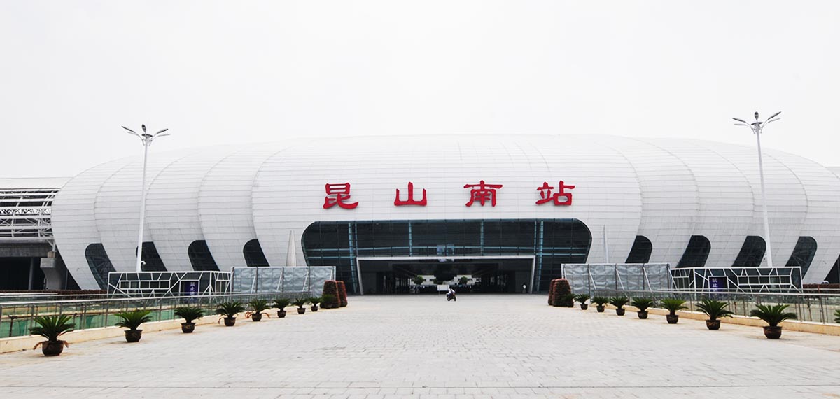 昆山南站,地處江蘇省昆山市,位于滬寧線以南、滬寧高速公路以北,長江路西側(cè),距離既有昆山站1.7公里,隸屬上海鐵路局蘇州站管轄,與滬寧城際并站建設(shè),并且連接京滬高速鐵路、滬寧城際鐵路以及滬漢蓉鐵路。